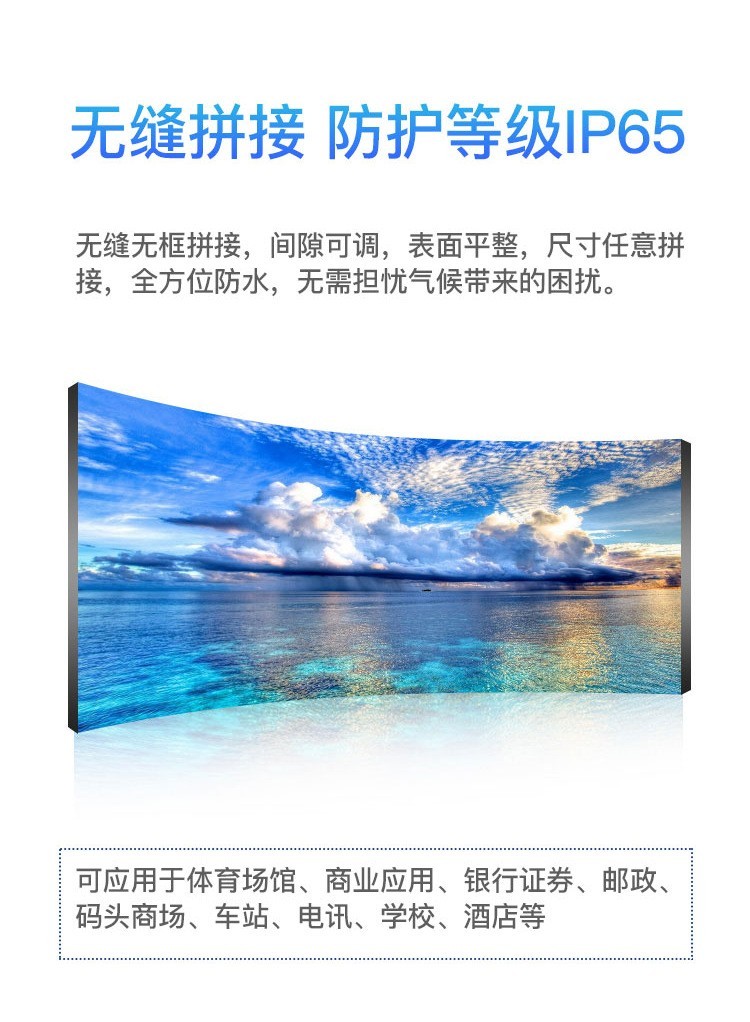 本產品為91视频网站專顯戶外係列前維護防水產品,采用 320x160mm 防水模塊, 搭配 960x960mm 標配箱體,可實現模(mó)組前維護。該係列產品適用於戶外各類不同環境亮度的應用領域,具有高亮高對比、畫麵絢爛真(zhēn)實、防護能力高、耐候性優良、使用壽命長等特點。