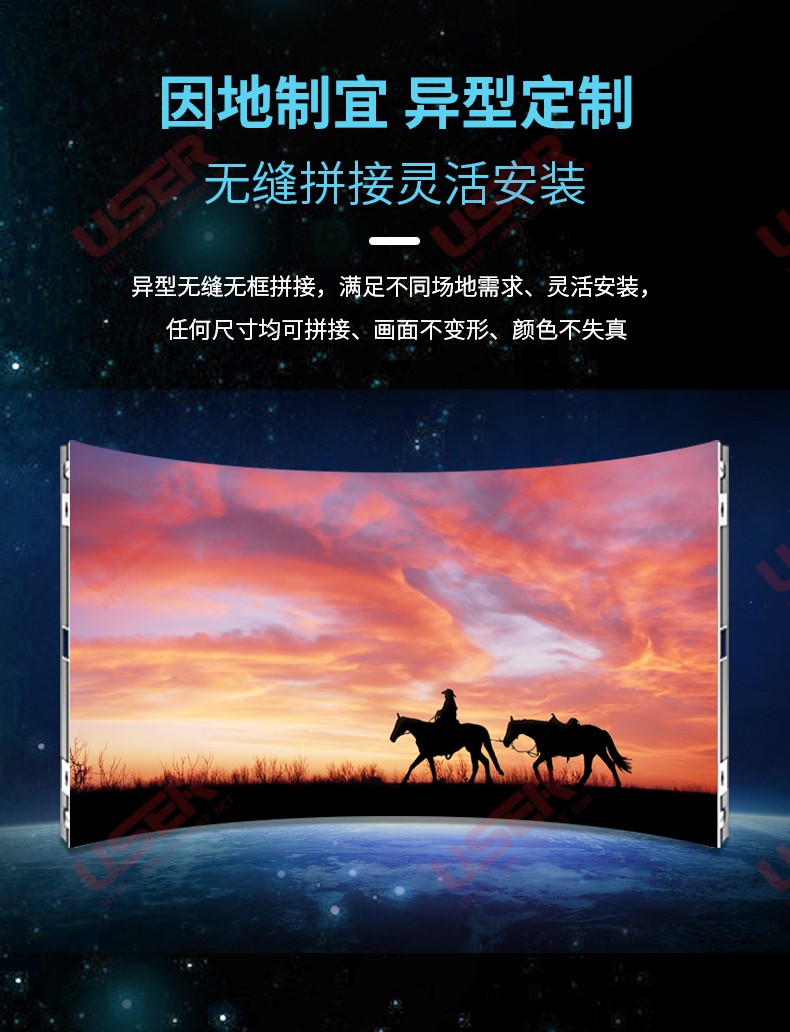 箱體可水平、垂直方向進行無縫拚接,有效減少(shǎo)視覺縫隙幹(gàn)擾,畫麵顯示完整連貫。