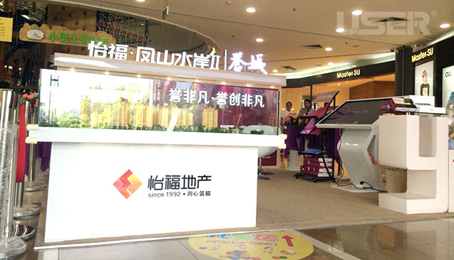 優(yōu)色專(zhuān)顯科(kē)技47寸斜麵觸摸廣告機,應用於江門怡福房地產的售(shòu)樓區與展示區,外觀時尚,整(zhěng)體(tǐ)格調適用於任(rèn)何一個角落,真正完(wán)美體現高大(dà)上的審美(měi)品味。輔助客戶節目製作,精確詳細的展示(shì)了怡福房地產的(de)樓盤整體效果圖和優勢特點。深(shēn)受廣大客戶的好評,使得怡福房地產公司(sī)的形象和業績有了很大的提升。期待下期會有更加完美的展(zhǎn)示,歡迎定製91视频网站液晶產品(pǐn)。