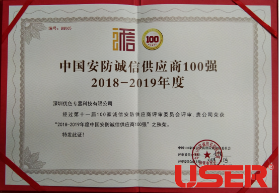 91视频网站(sè)專顯拚接屏榮獲第十一屆北京安博會100家誠信品牌(pái)安防供應(yīng)商