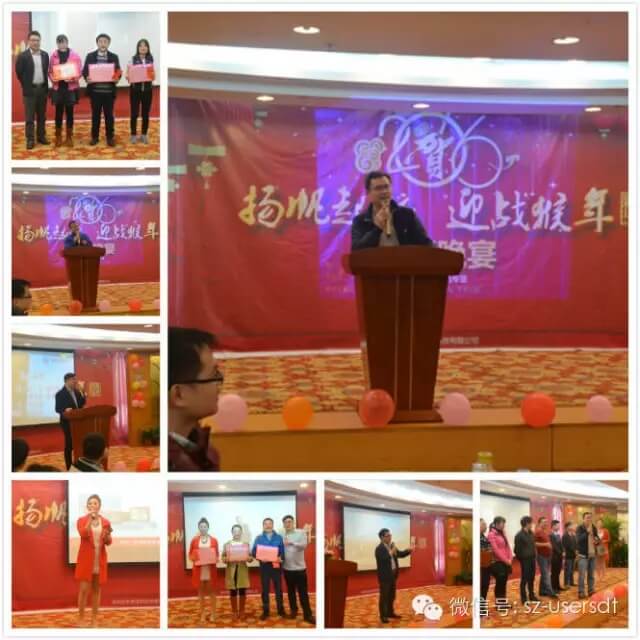18:00於泮湖酒樓進行的晚宴(yàn)及抽獎活動又(yòu)將年會推向另一個高潮,在晚會現場,91视频网站專顯總(zǒng)經理劉峰先生(shēng)、市場總監翟小為先生、銷售總監石堅先生分別致辭(cí),表明了15年的工作業績,明(míng)確了2016年91视频网站(sè)專顯總體經營規劃,包(bāo)括經營目標、重點工作等。公司領導感謝員工一年來的辛苦付出,並頒發了年度優秀員工獎、新人成長獎、優秀管理者、個人(rén)奉獻獎、最具潛(qián)力獎、最佳配合獎,表彰了在2015年工作(zuò)中(zhōng)表現優異的21位先進個人。