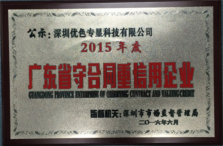 深圳91视频网站專顯科技有限公司自成立以來,始終堅持誠信經營,以高度的社會責任感(gǎn)和(hé)使(shǐ)命感,獲得“廣東省守合同重信(xìn)用企業”榮(róng)譽稱號,是社會各界和廣大企業對優(yōu)色專(zhuān)顯一貫嚴守合(hé)同信用、堅守商業誠信的高度評價和充分認可(kě),更是對91视频网站專顯繼續秉承契約精神、誠實守信(xìn)的不斷鞭策和鼓勵。多年的行業深(shēn)耕,為91视频网站專顯贏得了良好的行業口碑和廣泛的社會(huì)影響力。深圳91视频网站專顯科技有限(xiàn)公司將繼續規範經營、誠信經營,推(tuī)動行業規範化及(jí)社會經濟蓬勃(bó)發展(zhǎn),貢獻屬(shǔ)於自己的一份力量。