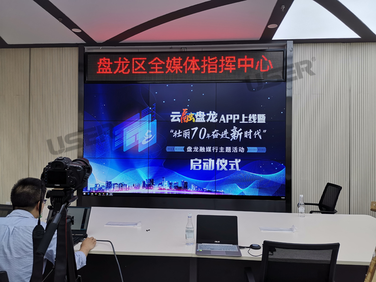 →昆明市(shì)盤龍區融媒體中心55寸拚(pīn)接屏項目竣工