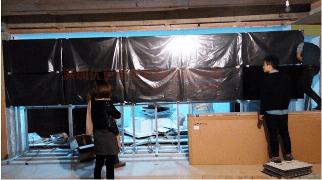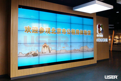 →公租房體驗館項目5行5列46寸液晶拚接屏5.5拚縫內嵌式拚接方案