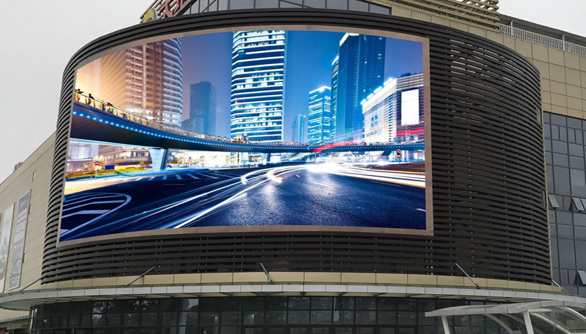 →揚州某時代廣場P5戶外弧形(xíng)LED顯示屏160平方
