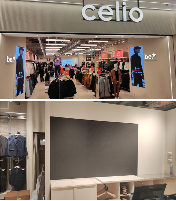 →服裝連鎖門店LED大屏、吊裝圓(yuán)環LED屏、條(tiáo)型LED顯示屏、貨架屏