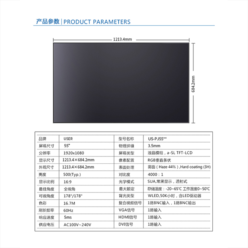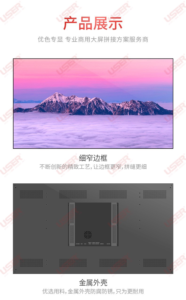 優(yōu)色3.5mm超窄邊55寸液晶拚接屏類(lèi)別:專業液晶拚接屏