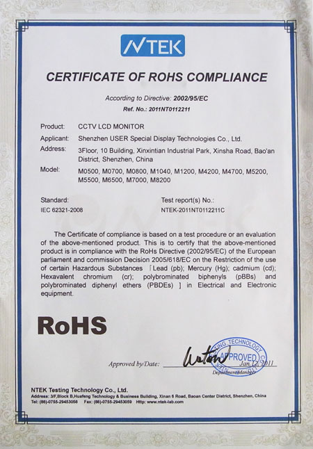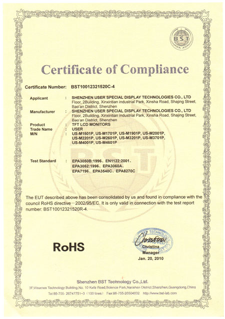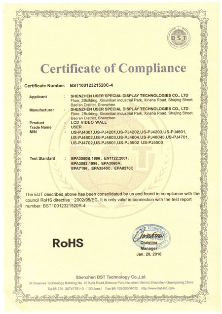 ROHS歐(ōu)盟認證(液晶拚接(jiē))