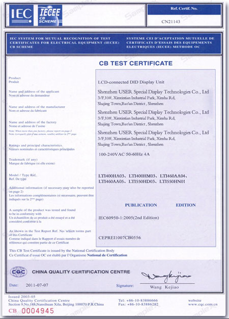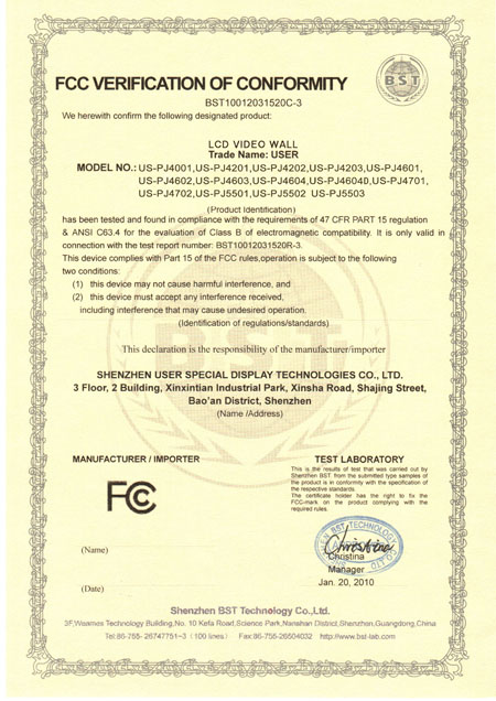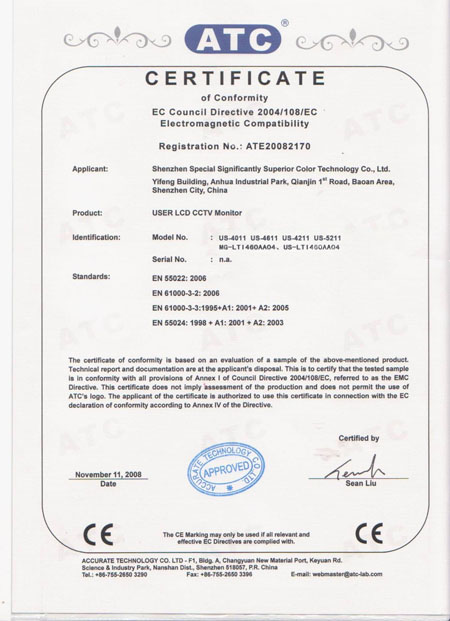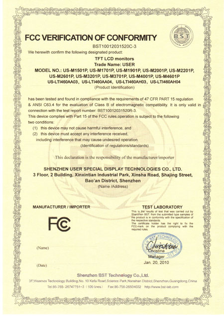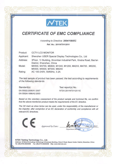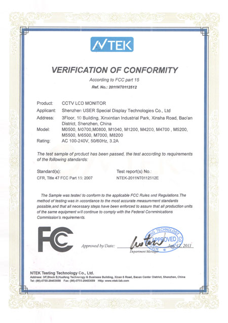 FCC認證歐盟認證(zhèng)(液晶監視器合格證明證書)