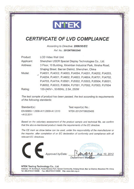 CE認證(zhèng)歐盟認證(液晶拚(pīn)接LVD安規證書)