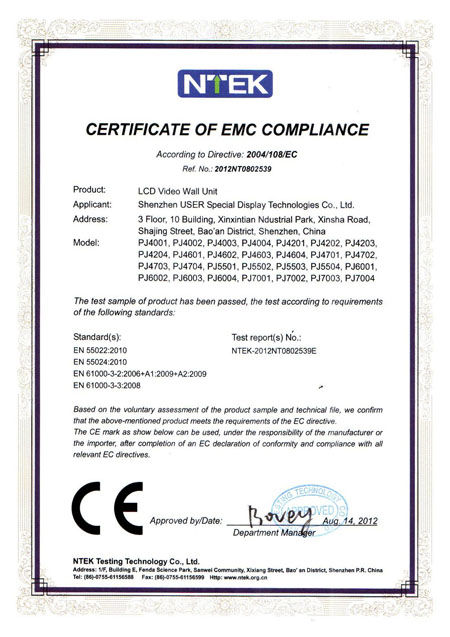 CE認證歐(ōu)盟認證(液晶拚接 EMC傳導輻射證書)