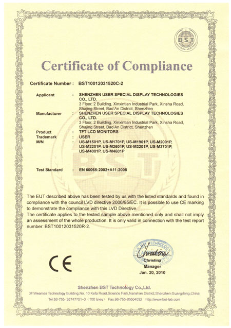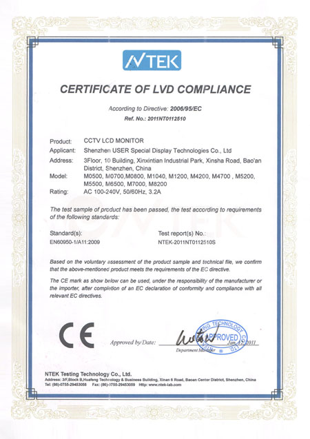 CE認證歐盟認證(液晶監(jiān)視器 LVD證書)