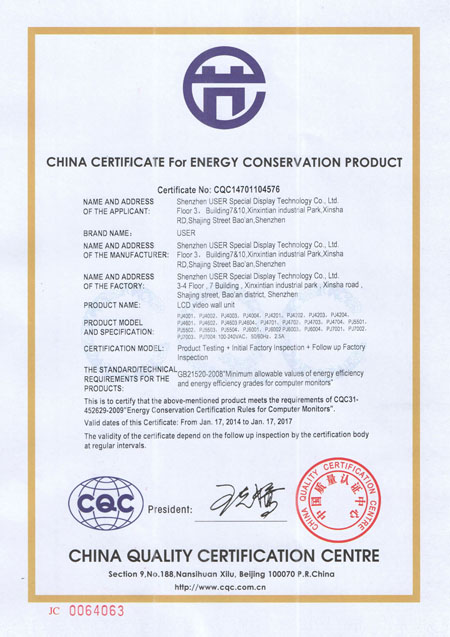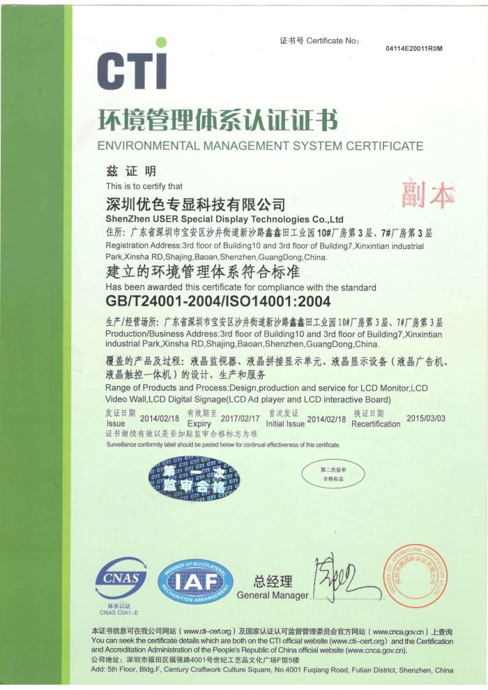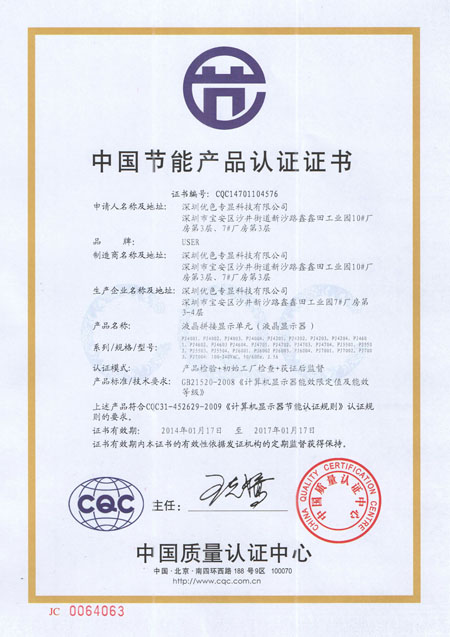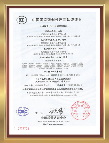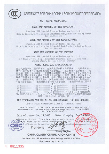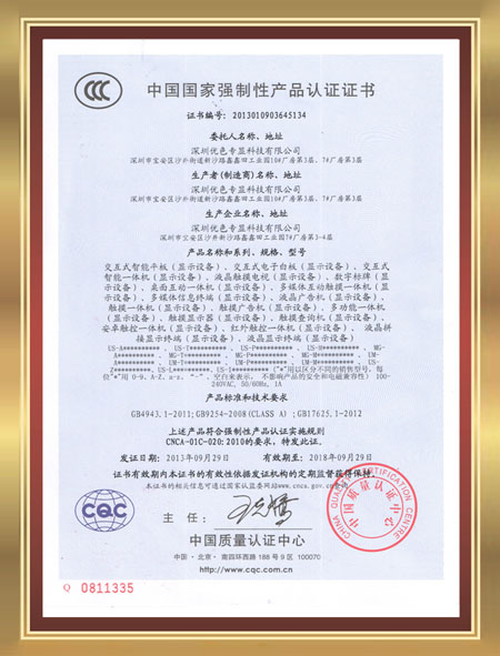 CCC認證(廣告觸控一體機(jī)英文證書)